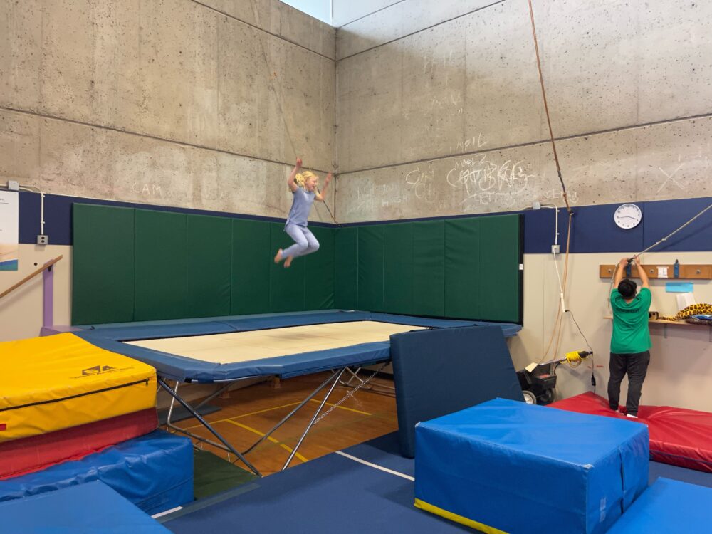 The kids had an awesome time in the large and fun UBC space. There is a big trampoline, climbing wall, ropes, rings, uneven and parallel bars, a large spring floor, and much more. There were two awesome instructors who organized a warm up and some fun games for the kids to play for the first 30 minutes.