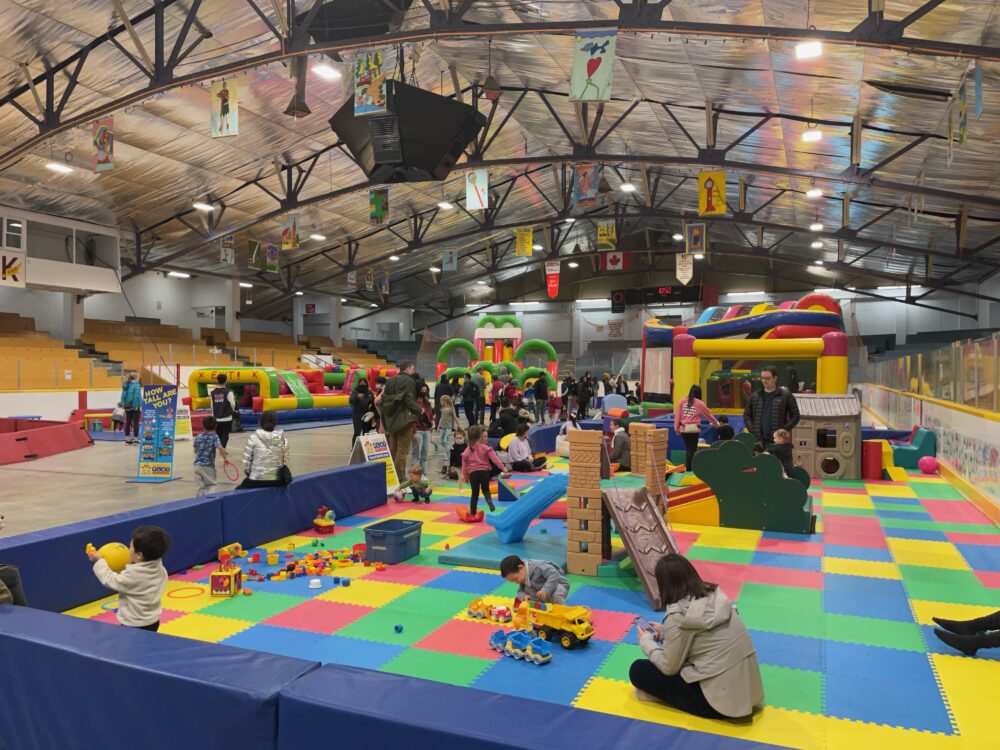The play palace is located in the Kerrisdale Arena. From the end of April until the start of September the ice is cleared out and instead the arena is filled with two inflatable bouncy castles, two inflatable obstacle courses, a giant slide, ride on cars and toys and an entire toddler area. Even if not going for a birthday party, this arena is open for drop-in fun all week long (admission runs around $5) and I highly recommend visiting!