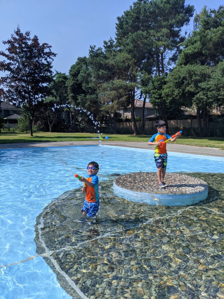 These two are our go-to places for outdoor water play in the summer, with King George being one of the more popular water parks and Dixon being a hidden gem. King George water park is large, colourful, and whimsical, featuring erupting volcanoes (my boys’ favourite), clouds, elephants, and bridges. There are trees surrounding one side of the water park, ideal for setting up picnic mats on the grass in the shade. Next to the water park is an even larger playground if your kids get bored of the water! Dixon wading pool is located at Dixon Elementary and is filled with water the day after school ends in June. This shallow wading pool is perfect for babies in floaties and for toddlers and young children. It is also adjacent to a large playground and also surrounded by trees on two sides for picnic mats on the shaded grass.